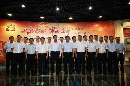 6月25日上午,中國兵器工業集團公司黨組書記、董事長焦開河,總經理、黨組副書記劉大山等黨組成員,總部部門各支部書記專程前往中央檔案館開展黨史教育專題現場學習,追尋黨的革命足跡,緬懷黨的光輝歷史,重溫黨的初心和使命。 中央檔案館收藏我黨成立以來各個時期的重要革命歷史檔案。焦開河一行學習了老一輩無產階級革命家的重要歷史影音資料,觀看了“不忘初心、牢記使命”主題教育檔案文獻展。 主題教育檔案文獻展分為志存高遠、矢志不渝、寄情于民、率先垂范等章節,集中展出了從馬克思主義傳播到中國起始,我黨在多個歷史時期的重要檔案文獻。一份份珍貴的手稿、文件,一張張歷史厚重的照片,真實展現了我黨從建黨之初一步步發展壯大的崢嶸歲月、奮斗之路。 通過觀看學習,同志們進一步領會“一切向前走,都不能忘記走過的路;走得再遠、走到再光輝的未來,也不能忘記走過的過去,不能忘記為什么出發”的重大意義,深切感受到老一輩無產階級革命家對馬克思主義的堅定信仰、對黨的事業的必勝信念,深切感受到一代代共產黨人艱辛探索、革故鼎新的堅強革命意志和對奮斗目標的執著追求,深切感受到新時代牢記黨的初心和使命、深入推進黨的自我革命的重要現實意義。 黨組同志和總部部門支部書記面對黨旗,重溫了入黨誓詞。一致表示,這次專題學習是一次深刻的黨性教育和精神洗禮,要始終牢記共產黨人“為中國人民謀幸福、為中華民族謀復興”的初心和使命,堅定不移履行好強軍首責,加快推動高質量發展,努力建設世界一流企業,走好新時代的長征路。