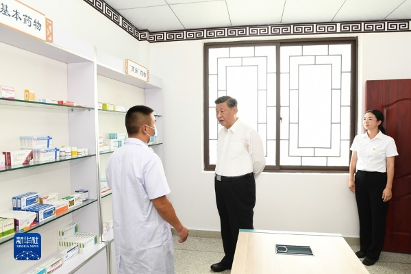 習近平十分關心推進鄉村振興情況。他步行察看永豐村污水處理池和村容村貌,考察村衛生站,詳細了解該村改善人居環境、做好農村疫情防控等情況。習近平強調,鄉親們吃穿不愁后,最關心的就是醫藥問題。要加強鄉村衛生體系建設,保障好廣大農民群眾基本醫療。要把黨的基層組織建設好,團結帶領鄉親們脫貧之后接續推進鄉村振興。