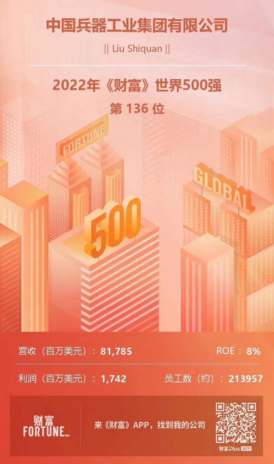 兵器工業集團位列2022年《財富》世界500強第136位